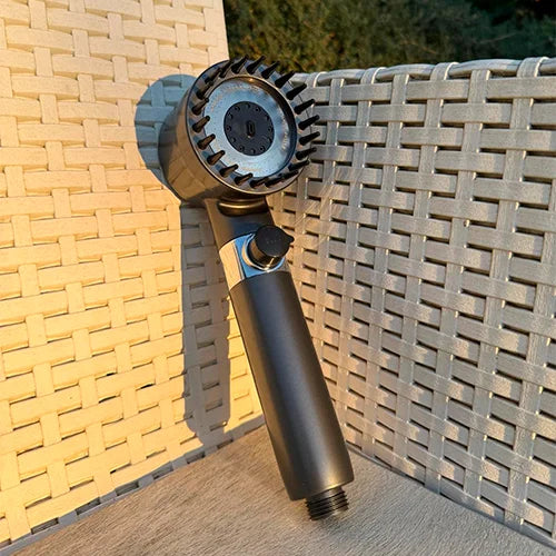 - 1 Cabezal de ducha con sistema de presión y cepillo de silicona masajeador integrado.