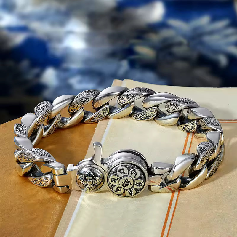 El Brazalete Karma Sagrado no es joyería común:es un amuleto de protección espiritual fabricado en materiales de alta calidad con el poderoso mantra "Om Mani Padme Hum".